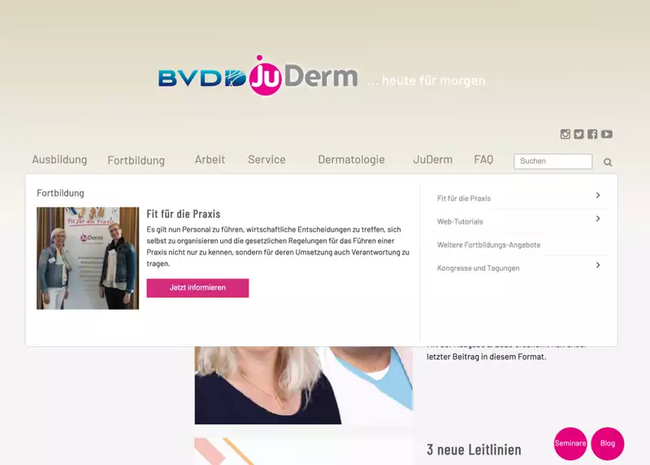 Die JuDerm-Website www.juderm.de wendet sich an junge Dermatologen mit zielgruppenrelevanten Angeboten und Beiträgen.